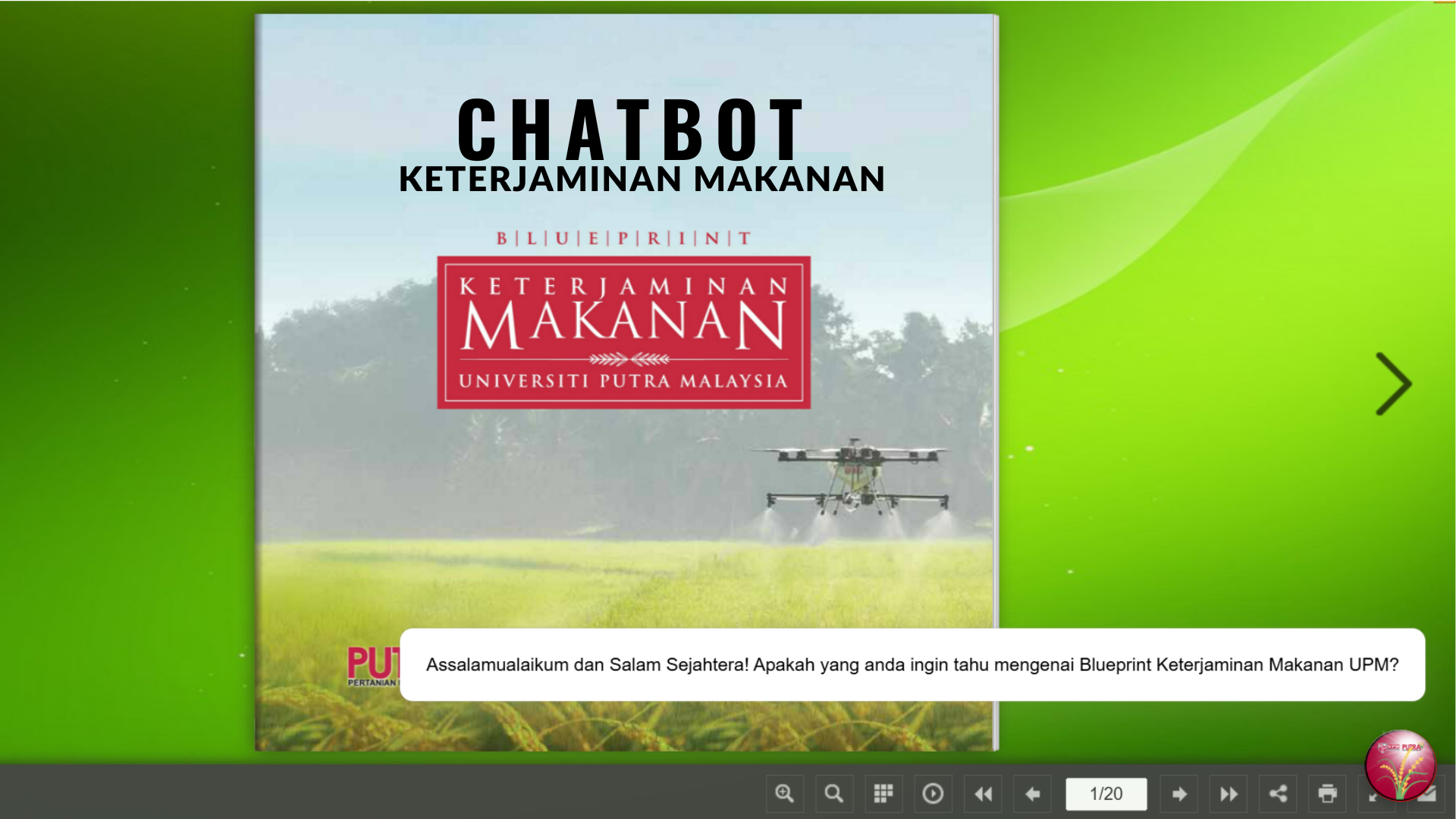 The ceremony ended with a visit to the exhibition. The Vice-Chancellor had the opportunity to try the Food Security Chatbot at the Infocomm Development Center (iDEC) booth.